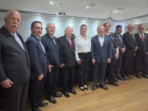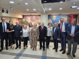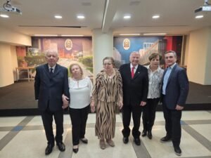 Juntamente com a família Chiomento estavam no evento, o anfitrião, José Roberto dos Anjos, presidente do Sindcont-SP; Itamar Borges, deputado estadual; João Carlos Castilho Garcia, representante do Conselho Federal de Contabilidade-CFC Antonio Carlos Santos, presidente do Sescon-SP e da Aescon-SP; Márcio Massao Shimomoto, presidente da Junta Comercial do Estado de São PauloJucesp; Ronaldo Fróes de Carvalho, Pró-Reitor e Coordenador de Graduação da Fundação Escola de Comércio Álvares Penteado-Fecap; Claudinei Tonon, presidente do Sindcont-SP na gestão 2023-2025; Suely Bossa, presidente da Associação dos Peritos Judiciais do Estado de São Paulo-Apejesp; professor Valério Vitor Bonelli, da Pontifícia Universidade Católica de São Paulo-PUC-SP, e outros de igual expressão na classe contábil.