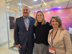 Carla Alvares Chiomento, que acumula a função de vice-presidente Administrativa da Aescon-SP, dividiu o palco com o vice-presidente Institucional do Sescon-SP, Jorge Luiz Segeti, para moderar o painel “O mundo sempre em transformação, mas agora bem mais rápido”, apresentado pela especialista Daniela Klaiman e, na sequência, participou de um PodCast para falar sobre o tema em debate.